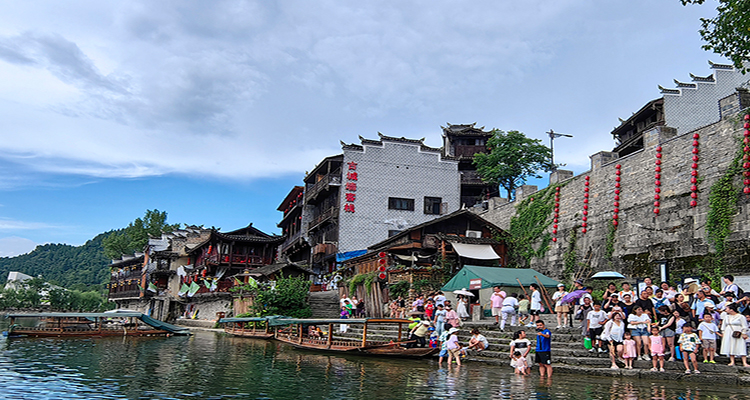 而在茶峒古鎮(zhèn)內(nèi)部,有一種獨特的交通工具——拉拉渡,絕對值得體驗。拉拉渡是用一根長長的鐵纜固定在江兩岸的石頭樁上,然后把渡船用鐵環(huán)相扣在鐵纜上,船與鐵纜相互依存,可自由往返于固定路線的江面之上。艄公不靠劃槳和撐篙,全憑一根帶凹口的木棒,在鐵纜繩上拖拉前行,從而把人們安全運(yùn)送到河的兩岸。乘坐拉拉渡,只需花費2元,你就能感受到這種古老而獨特的渡江方式,同時還能欣賞到清水江兩岸的美麗風(fēng)光。不過需要注意的是,2024年10月30日,拉拉渡因安全隱患被停止運(yùn)行,截至2024年12月,湘西州委宣傳部、邊城鎮(zhèn)人民政府相關(guān)工作人員對于拉拉渡具體停運(yùn)原因、何時恢復(fù)也表示暫不清楚,若想體驗,出行前還需留意最新消息。除了拉拉渡,你也可以選擇乘坐游船游覽花垣河,費用大概是25元,坐在游船上,你可以悠閑地欣賞“一腳踏三省”的獨特風(fēng)光,感受古鎮(zhèn)的寧靜與美好。