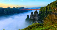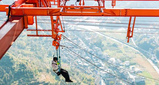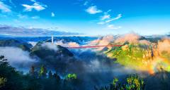 矮寨大橋飛越在德夯峽谷之巔,是世界跨峽谷跨徑最大的鋼桁梁懸索橋,大橋跨徑1176米,橋面距離峽谷底部355米。2007年10月開(kāi)始修建,2012年3月建成通車(chē),總造價(jià)15億元。大橋以克服了五大“世界級(jí)”施工難題和創(chuàng)造了四項(xiàng)“世界第一” 的高科技含量享譽(yù)中外,被贊為橋梁建筑藝術(shù)和自然景觀完美結(jié)合的典范。矮寨大橋不只是連接湘渝的重要交通設(shè)施,更是湘西的標(biāo)志性景點(diǎn)。