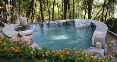 張家界萬福溫泉度假區(qū)配套有按準(zhǔn)五星級標(biāo)準(zhǔn)打造的酒店主樓、附樓各一棟,標(biāo)準(zhǔn)客房400余間;能容納800人的大、中、小型培訓(xùn)會議室及教學(xué)會議就餐場所;溫泉水世界景區(qū)面積約60畝,建設(shè)有接待大樓1棟,面積4000多平方米。擁有戶外99個(gè)原生態(tài)森林泡池、夏季歡樂水世界海浪池、三彩滑道、螺旋皮筏滑道、歡樂水寨等夏季水上項(xiàng)目。萬福溫泉?dú)g樂谷戶外拓展基地,規(guī)劃面積100畝,分為戶外拓展區(qū)、拉丁車賽道、無動力樂園、歡樂滑草、勇敢者營地、叢林穿越、度假森林等??蛇M(jìn)行研學(xué)教學(xué)、體驗(yàn)民俗文化、軍事拓展培訓(xùn)等。目前是湖南地區(qū)規(guī)模領(lǐng)先、配套設(shè)施齊備的中醫(yī)藥康養(yǎng)精品景區(qū)和中小學(xué)研學(xué)實(shí)踐教育基地。