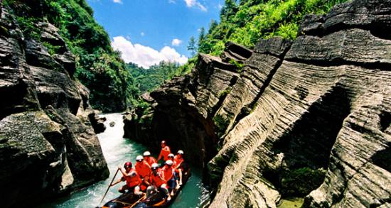 西門峽漂流全程6公里。屬萬溶江流域,它發(fā)源于兩頭羊自然保護(hù)區(qū)的群山之中;沿途危崖夾峙、樹木蔥榮、水質(zhì)清澈、急流險灘星羅棋布。共有虎跳澗、白龍灘、臥龍灘、青龍灘、鬼見愁、龍王灘等急流險灘30余個。其中以青龍灘最為著名,它全長400余米,落差20余米。它和龍王灘一道堪稱國內(nèi)漂流之經(jīng)典。