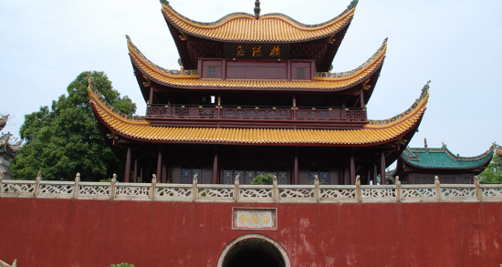 閱軍樓在兩晉、南北朝時(shí)被稱為巴陵城樓,到唐朝時(shí)期方始稱岳陽樓。