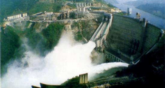 1986年8月2日,東江水電站正式關(guān)閘蓄水,雙曲大壩鎖住滾滾東江水,將其定格成碧波萬頃的湘南明珠——東江湖。大壩兩側(cè)有三條滑雪式溢洪道,每當瀉洪時,湖水從溢洪道飛瀉而下,再騰空躍起,頃刻間化成雨霧,迷漫整個峽谷,其勢如萬馬奔騰,其聲似萬鈞雷霆。身歷其境,如夢如幻,仿佛在縹緲之中,羽化飛升。即使在幾里開外,仍感水星拂面,頗具“盤空舞雪飛泉落,撲面銀花細雨來”的詩畫意境。