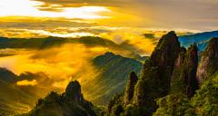 云棧漫步總長約8千米,是中國南方最長的懸空棧道海拔在1400米至1600米之間,兩層棧道,兩臺垂直觀光電梯,上下連接,全程無障礙觀光環(huán)線。天臺山景區(qū)位于莽山的東北方,由三座海拔1700米以上的高峰和一個大峽谷構成,左邊的這座山,叫摩天嶺;右邊的這座,叫天臺峰,1757米,被稱為“中南第一險”;中間的這座,叫觀音崖;三峰鼎立的中間,就是金鞭大峽谷,這里有金鞭神柱、東天門等景點。 金鞭大峽谷(金鞭攬勝)
