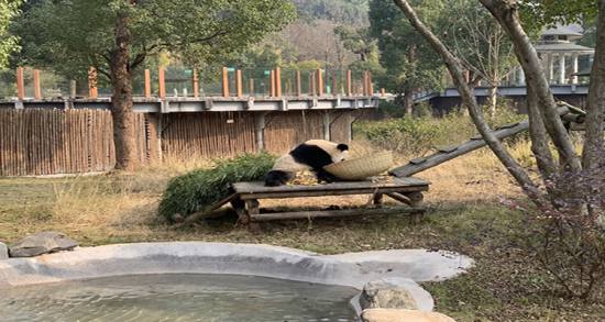 大熊貓館是步行區(qū)的標志性建筑之一,場館面積370平方米,有室內(nèi)場館和室外活動場兩部分組成。一條長橋穿行于室外活動場,人行其中可更接近我們的國寶大熊貓。園內(nèi)有2只從四川成都熊貓基地引進的亞成體大熊貓“貝貝”和“雙雙”。在大熊貓室內(nèi)展館設有大熊貓紀念品專賣商店。游客可以將做工精美的熊貓玩具、文具等紀念品帶回家。