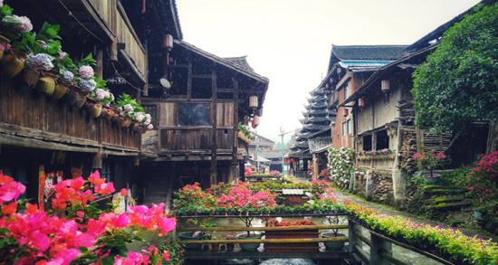 廻龍橋、牙上鼓樓、龍脈廣場(chǎng)、1.6公里長(zhǎng)的古驛道、龍門(mén)、長(zhǎng)壽井、薩歲壇。網(wǎng)紅打卡點(diǎn)有“景觀石”、“花街古道”、侗族婚禮“囍文化”拍攝基地。